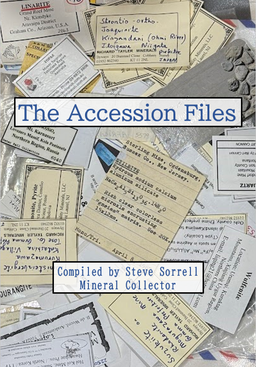 As the current custodian of these minerals, this project, The Accession Files, will create an unparalleled personal connection to my collection. Understanding the journey of each specimen, the hands it has passed through and the stories behind those individuals, transforms a collection of beautiful objects into a tangible piece of history.